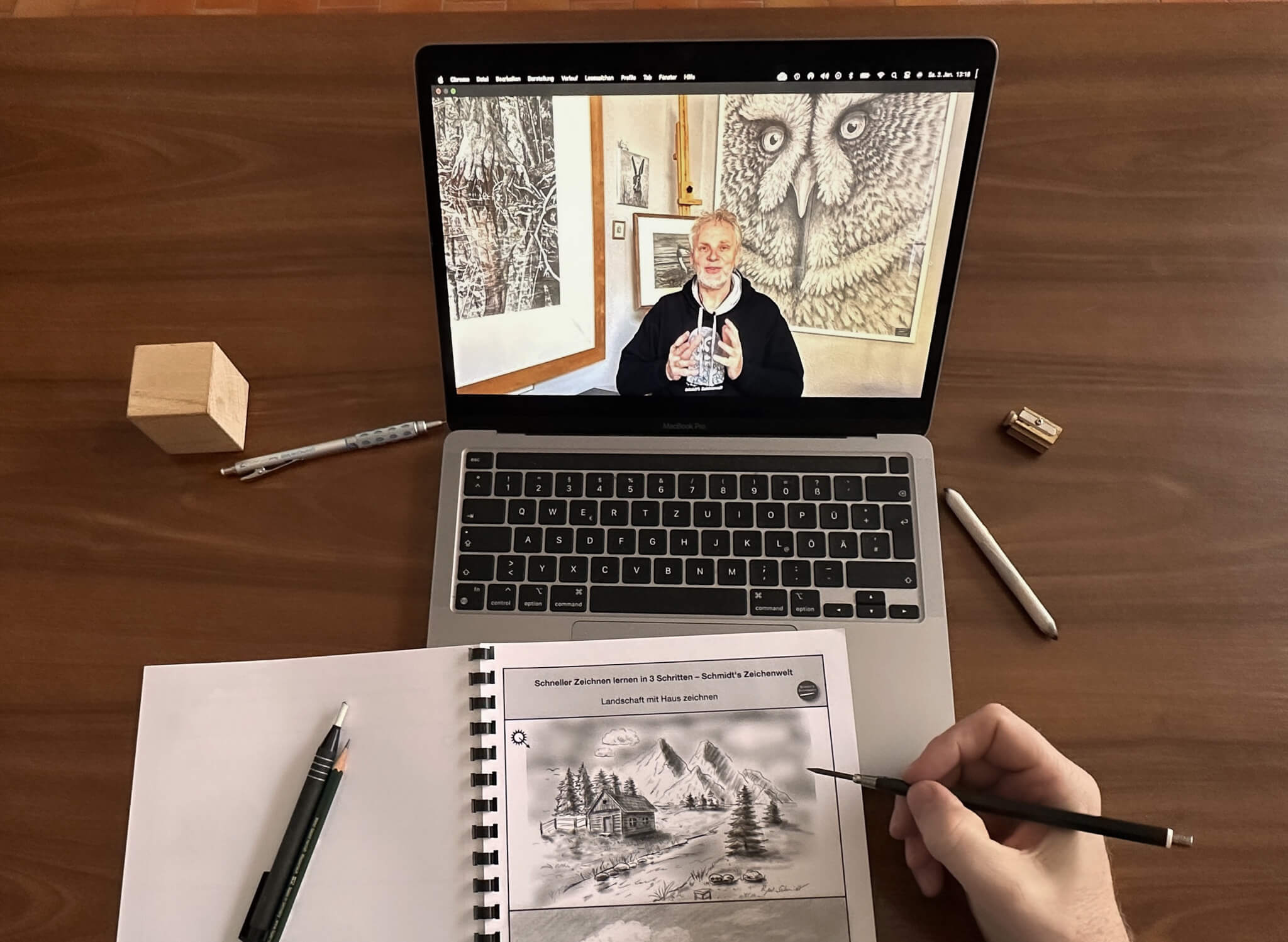 Du zeichnest Seite an Seite mit Ralf Wilhelm Schmidt – seine Erfahrung, Ruhe und klare Anleitung machen jeden Schritt verständlich und sofort anwendbar. Egal, ob du mit Aquarell, Acryl, Öl oder einer anderen Technik arbeitest – Zeichnen zu können ist die Grundlage für überzeugende, lebendige und ausdrucksstarke Kunst.